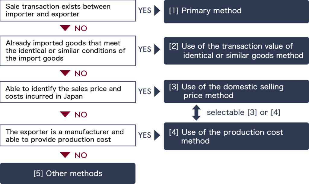 The basis for determining the customs value for Japanese imports is the Customs Tariff Law (in accordance with the WTO Customs Valuation Agreement).