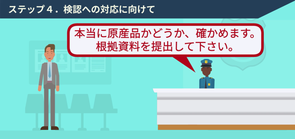 原産地証明書を取得して輸出が完了した後にも検認に備える必要があります。検認(海外では、Verificationといいます)とは、輸入国側の当局が、特恵税率を適用して輸入申告された貨物について、各経済連携協定及び関税関係法令の規定に基づき、輸入通関後にその貨物が相手国の原産品であるか否かについての確認を行うことをいいます。検認は輸出国(日本)側の当局を通じて行われたり、輸入国側の当局から直接検認がなされる場合など様々ですが、検認の主体者は輸入国側の当局となりますので、根拠資料は英語併記で準備しておくことが望ましいと言えます。