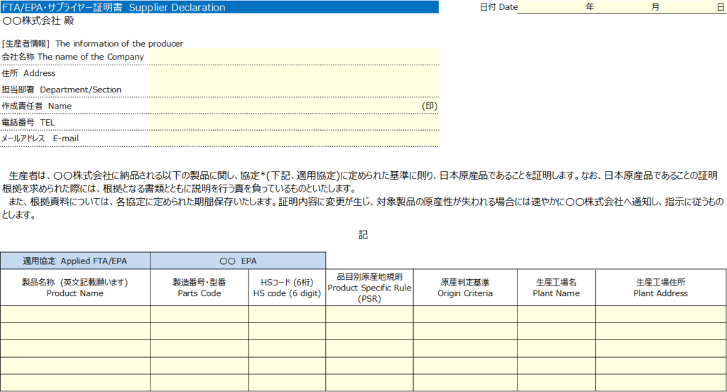 EPA / FTA 特定原産地証明書の代行業務は御任せ下さい↓