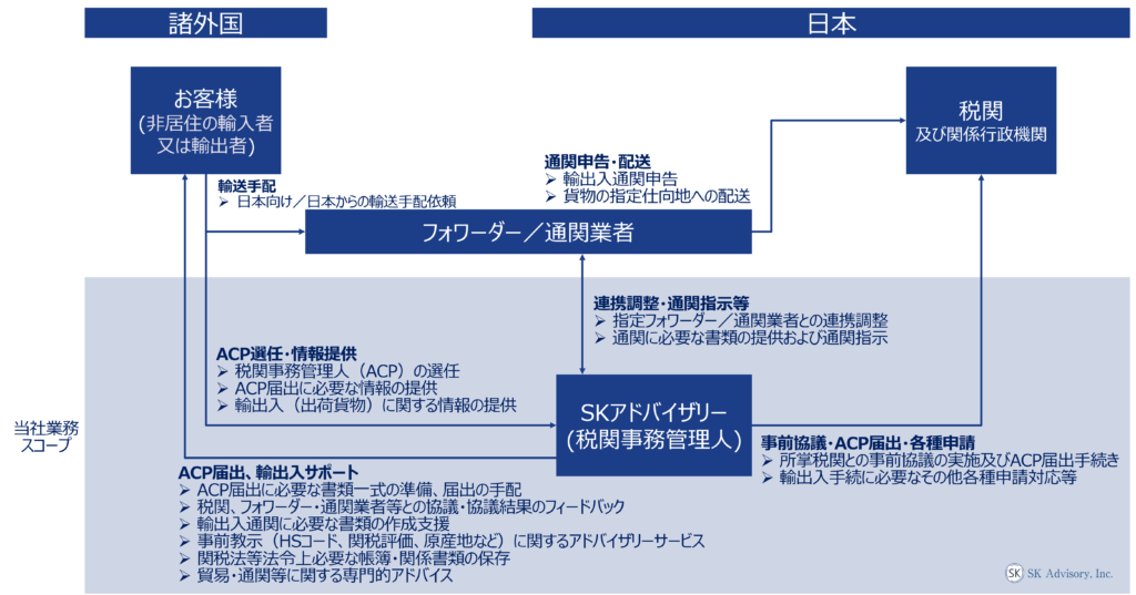 基本業務スコープ(税関事務管理人としてサポートさせていただく主な業務内容)
